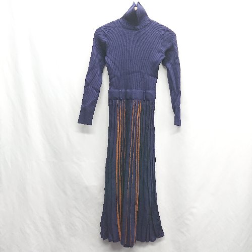 ◇ ⊇ REDYAZEL レディアゼル ウエストゴム ストレッチ素材 長袖 ロング ニットワンピース サイズF ネイビー レディース E 【中古】