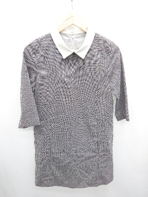 ◇ Θ REDYAZEL レディアゼル 千鳥柄 七分袖 ミニ丈 タイト ワンピース サイズS グレー系 レディース P 【中古】