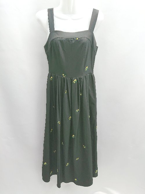 ◇ ⊂ REDYAZEL レディアゼル 花柄刺繍入り ロング キャミワンピース サイズF ブラック レディース E 【中古】