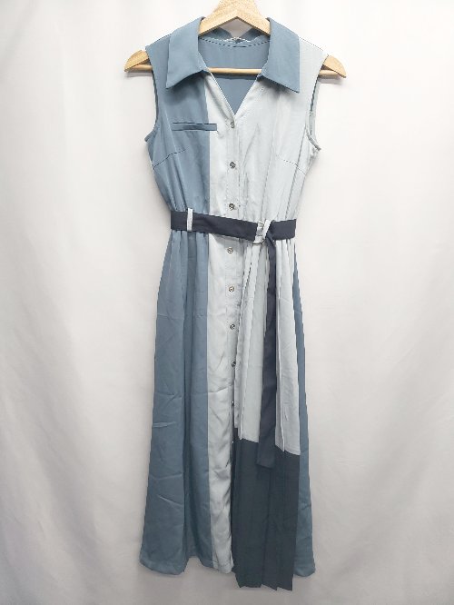 ◇ ⊂ レディアゼル フロントボタン プリーツ 切替 ノースリーブ 膝下丈 ワンピース サイズS ブルー系 レディース E 【中古】