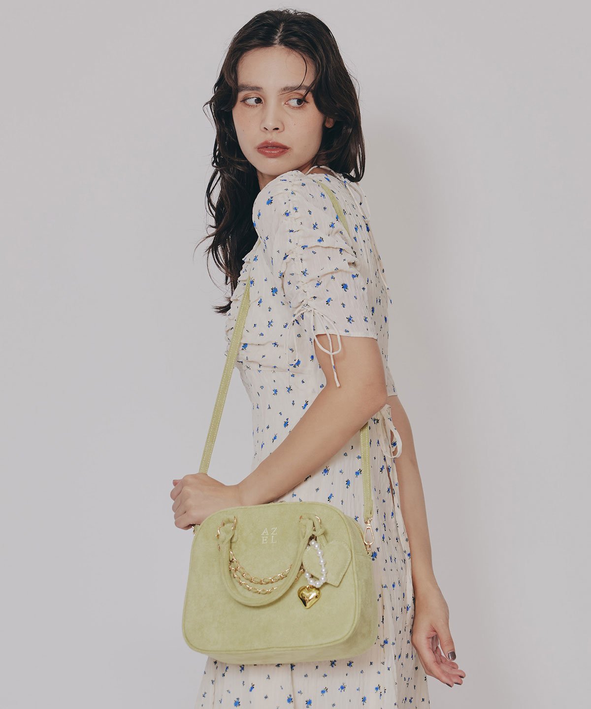 REDYAZEL チャーム2WAYスクエアバッグ レディアゼル バッグ ショルダーバッグ グリーン ブラウン【送料無料】