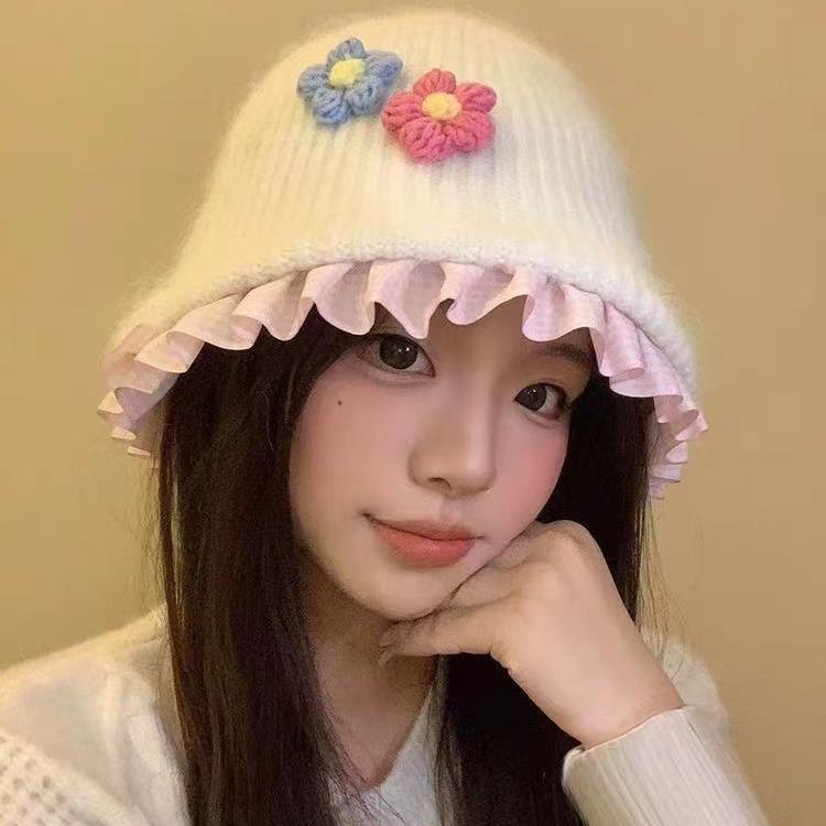 帽子 レディース 秋冬 バケットハット ニット帽 花柄 あったか 小顔効果 毛糸 かわいい おしゃれ