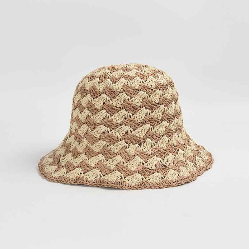 麦わら帽子 レディース レトロ あみ込み 平ら 短いつば ハット リゾート 海 ビーチ 日焼け止め ベージュ 黒 カーキ 春夏3