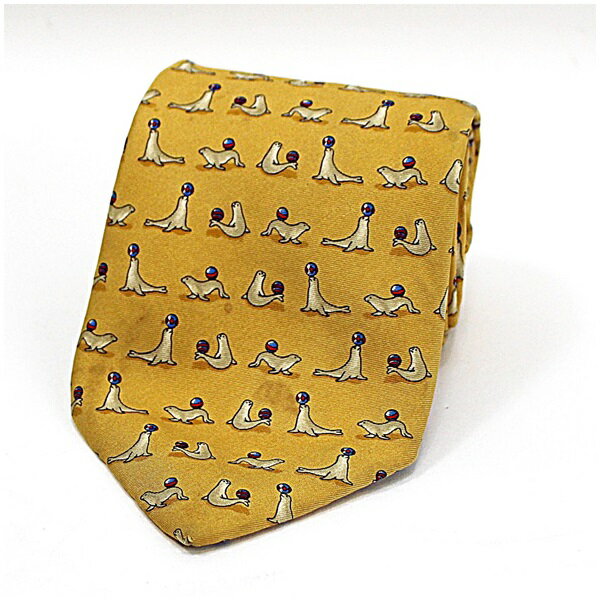 ビューフォート タイラック シルク ネクタイ 中古 Bランク BEAUFORT tie rack| メンズ ビジネス オットセイ柄 動物柄 【ネコポス送料無料】