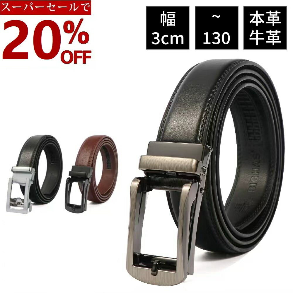 【20%OFFクーポン★楽天スーパーSALE】ベルト メンズ 無段階 オートロック 本革 レザー 牛革 大きいサイズ ロング 幅 3.0cm 30mm 穴なし ビジネス カジュアル メンズベルト 紳士 男性用 男子 丈夫 おしゃれ 通勤 通学 学生 高校生 仕事 スーツ 就活 BIGHAS