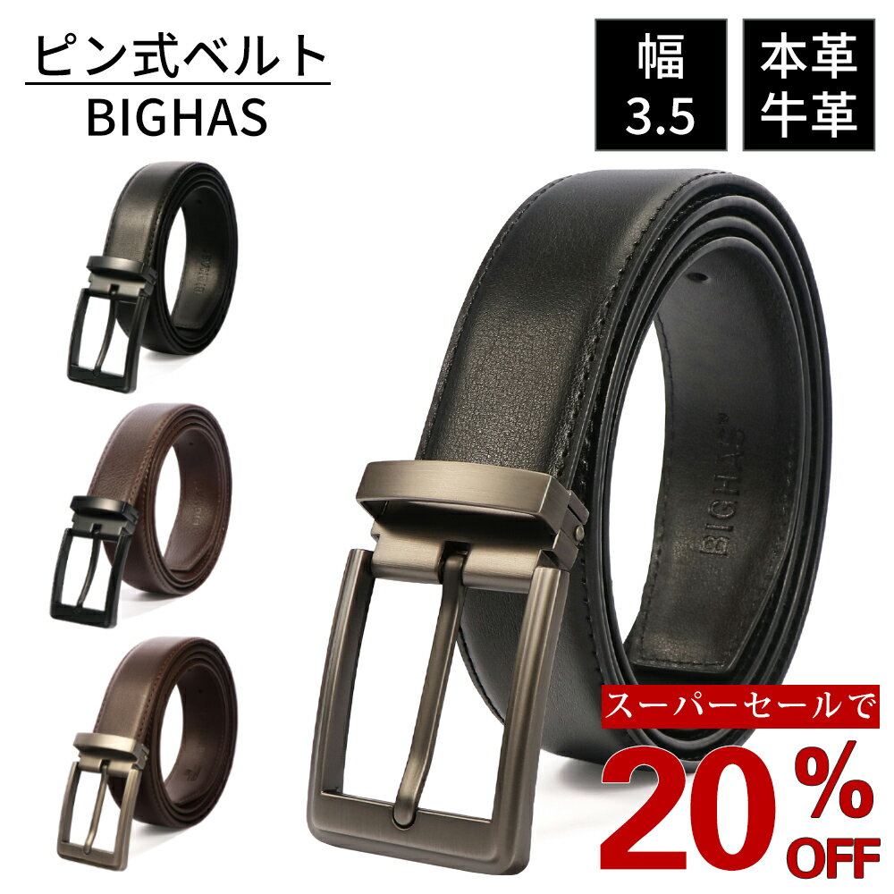 【20%OFFクーポン★楽天スーパーSALE】メンズ ピン式 本革 大きいサイズ ロング 幅 3.5cm 35mm レザー 牛革 丈夫 長持ち ビジネス カジュアル メンズベルト 紳士 男性用 男子 おしゃれ 通勤 通学 学生 高校生 仕事 スーツ 就活 BIGHAS
