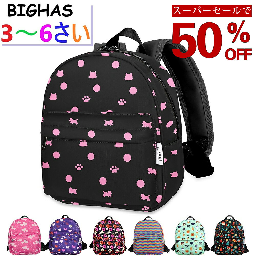【50%OFFクーポン★楽天スーパーSALE】リュック キッズリュック 当店限定 子供リュック 女の子 男の子 スクエア 幼稚園 3歳 6歳まで 女の子 男の子 無地 柄 猫 ドット レインボー 撥水 軽量 軽い こども 園児 通園 遠足 入園 コンパクト かわいい アウトドア BIGHAS 送料無料 ジュニアバッグ キッズバッグ 女の子 通園バッグ 遠足 幼稚園 保育園 ハーネス 子供 ガールズ キッズ 商品情報 保育園、幼稚園、小学校低学年向けのユニセックスタイプです。2~6歳、90~130cmのお子様におすすめです。メイン生地は軽くて耐久性に優れたポリエステル100%を使用。撥水加工を施してあるので濡れにくく、汚れにくい。汚れても洗濯できますし、シワになりにくいのでアイロンも不要です。ずれ落ち防止のチェストストラップは体にフィットできるよう、上下に調整できるので快適に使用できます。ショルダー先のヒモは簡単に長さ調整ができと同時に余りが出ないループタイプなのでヒモが地面に達して汚れたり挟まったりしない。容量は約5.5リットルあり、オムツ、お弁当箱、バスタオル、お着替えなど収納可。丈夫で長持ちするので入学、通学、学習塾、部活、登山、普段使いもアウトドアでも使用できるシンプルでかわいい人気のバックパックです。入園式、入学式、子供の日、誕生日、クリスマスなどでプレゼントできるよう、ブラック、ネイビー、カーキ、迷彩、カモフラグリーン、ピンク、イエロー、ツートンカラーなど用意しております。 1