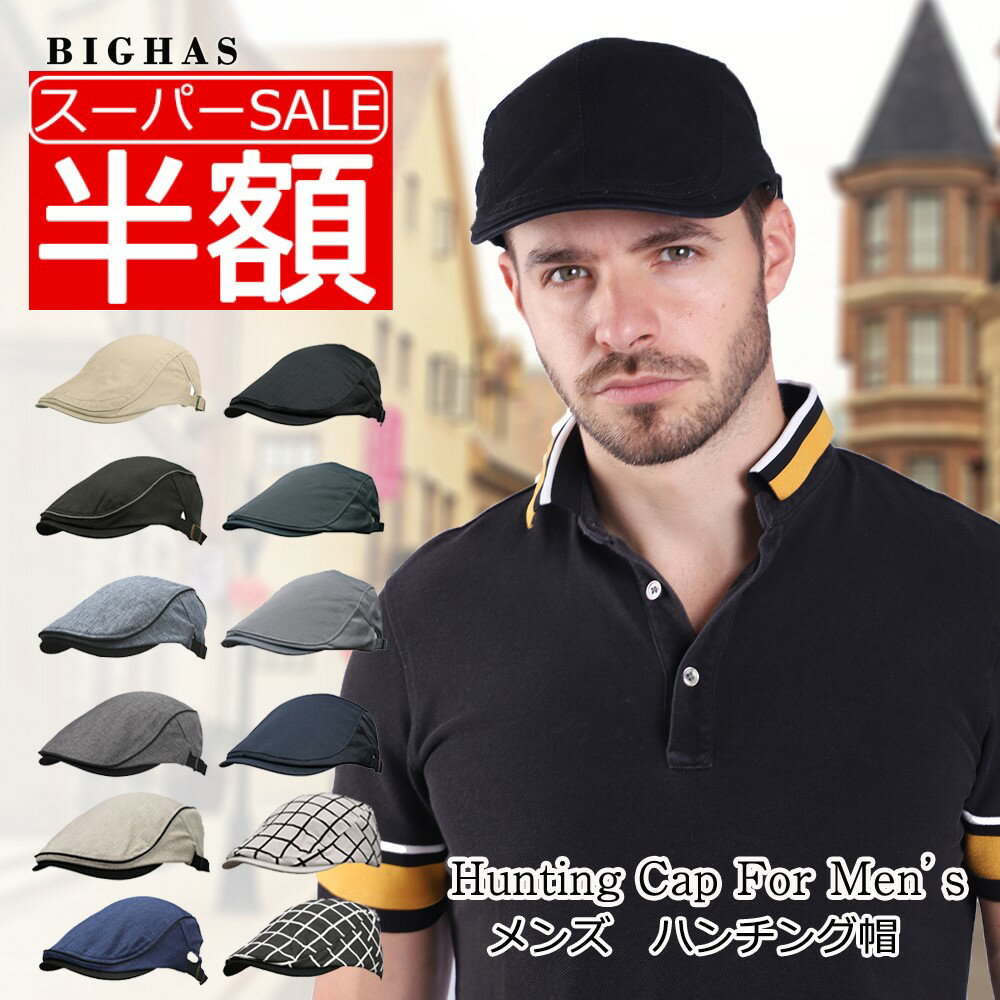【50%OFFクーポン★楽天スーパーSALE】ハンチング つば長 キャップ 大きいサイズ つばロング 帽子 キャスケット メンズ 紳士 ビッグサイズ ハンチング帽 ハット 鳥打帽 カジュアル シンプル 無地 おしゃれ サイズ調整可能 アウトドア 男性用 男子 ゴルフ BIGHAS