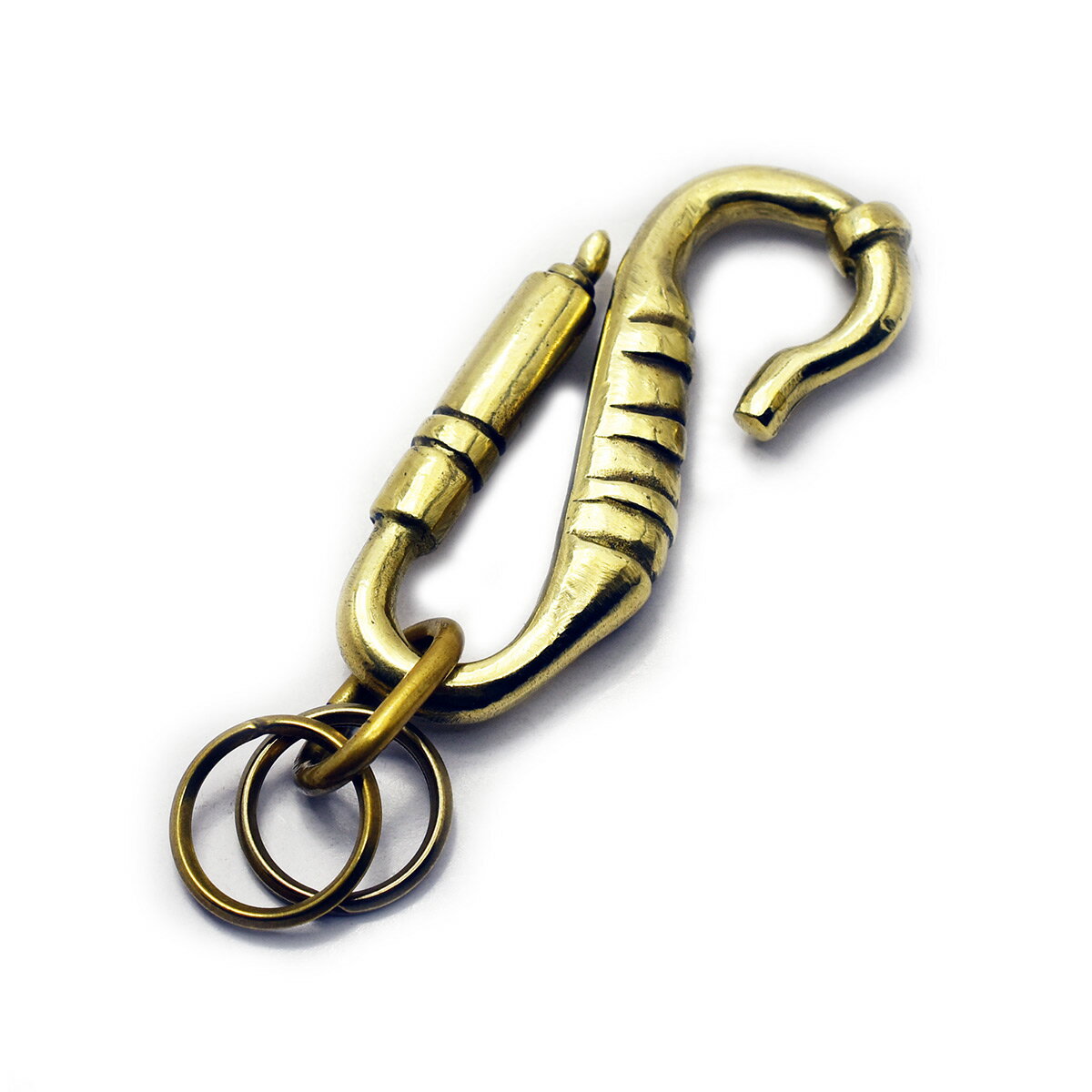 【NEW DESIGN!!】≪真鍮製 ブラス バイクマフラー キーフック ワイルドブラス 2重リング付き/カスタムバイクパーツ デザイン キーホルダー ブラスキーフック≫/真鍮/真鍮製/ブラス/釣り針型キーホルダー/工具/真鍮無垢