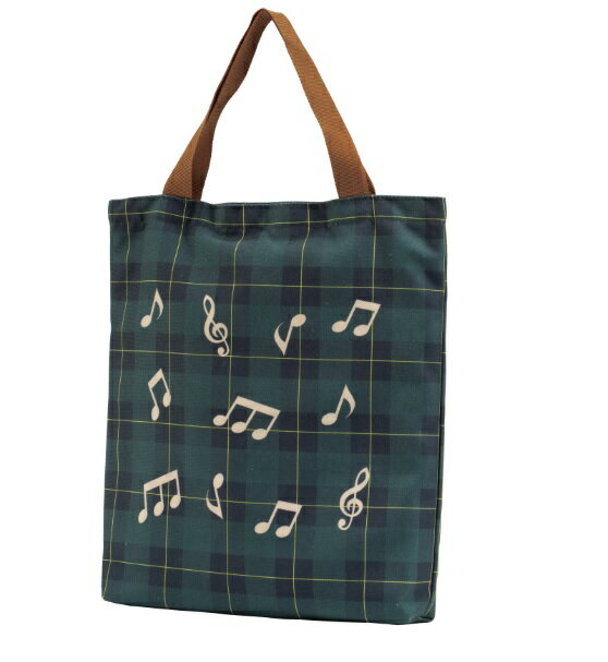 トートバッグ 縦型 音符 ト音記号 音符ブラックウォッチ