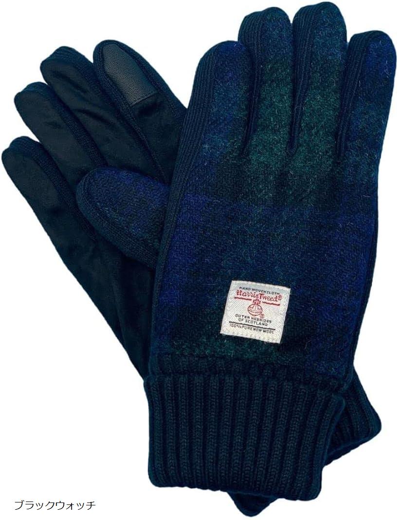 日本製 ハリスツイード 手袋 ウール 手袋 メンズ スマホ対応 手袋 革 ビジネス 本革 スマホ 手袋 男性用 ボア 防寒 ブランド クロダ Harris Tweed 黒 ブラックウォッチ チェック 柄 ブラウン レッド 赤 グレー プレゼント ギフト タッチパネル スマートフォン 対応