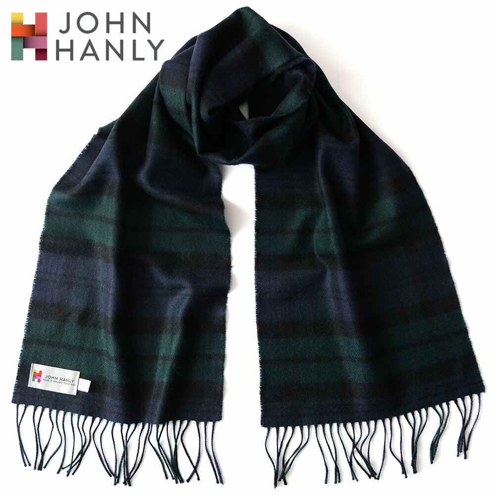 JOHN HANLY エクストラ ファイン メリノウール マフラー チェック柄[M-1.Black Watchブラックウォッチ チェック]メンズ レディース ユニセックス 男女兼用 プレゼントに 宅配便送料無料