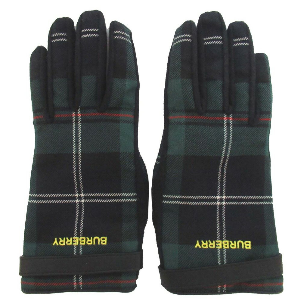 【中古】美品 BURBERRY バーバリー ブラックウォッチ チェック柄 グローブ 手袋 7.5サイズ グリーン レディース Luxs ブランド古着のリュクス