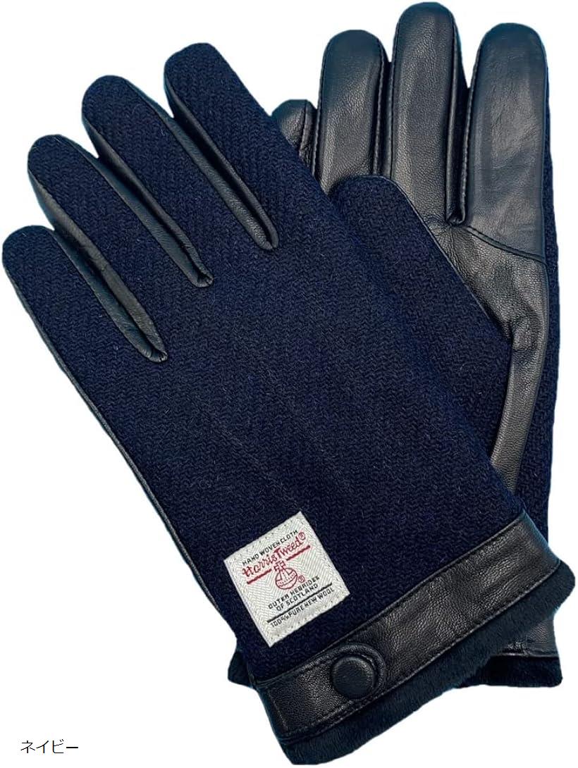ハリスツイード HARRIS Tweed x羊革手袋 メンズ スマホ対応 裏ボア HBGL008 NV へリンボン チャコールへリンボン チャコール ブラックウォッチ グレンチェック ブラックへリンボン ネイビー