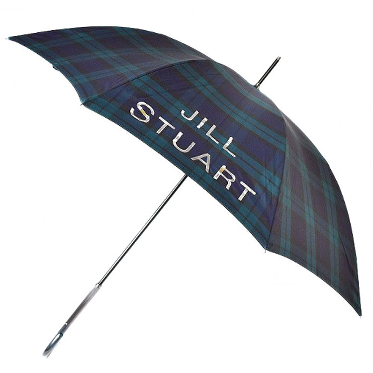 ジル スチュアート 雨傘 長傘 傘 レディース ブランド JILLSTUART チェック デザイン ビジュー ロゴ ブラックウォッチ 紺 ネイビー × グリーン 60cm 女性 婦人