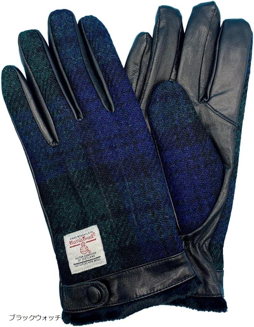 ハリスツイード HARRIS Tweed x羊革手袋 メンズ スマホ対応 裏ボア ブラックウォッチ HBGL008 GRC (ブラックウォッチ, M)