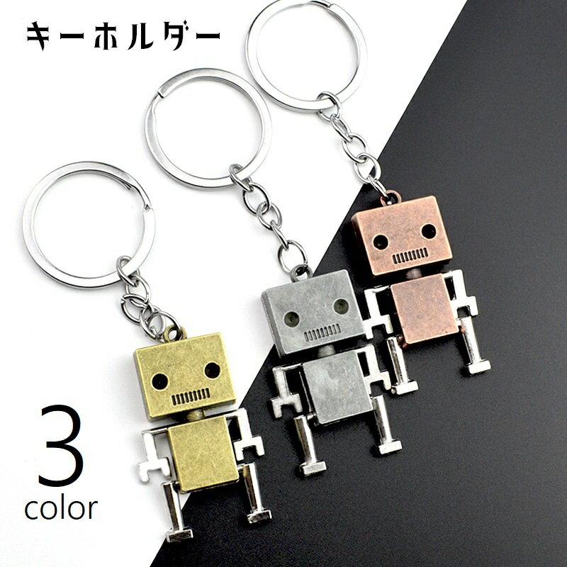 送料無料 キーホルダー キーリング キーチェーン ロボット バッグチャーム レトロ 小物 雑貨 手足が動く 揺れる かわいい かっこいい おしゃれ ユニーク プレゼント ギフト お揃い 金色 銀色 ブロンズ
