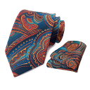 ネクタイ メンズ ビジネス フォーマル 結婚式 パーティー 通勤 ジャガード織り ポリエステル ペイズリー柄 ポケットチーフ 2点セット おしゃれ スタイリッシュ