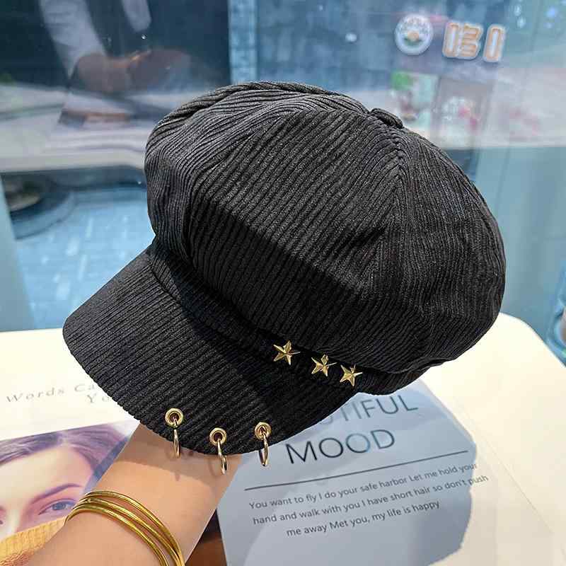 2帽子 レディース 春秋 コーデュロイ ベレー帽 ハンチング帽 おしゃれ かわいい トレンド カジュアル ストリート 小顔効果 紫外線対策 日よけ 普段使い お出かけ 旅行 ブラック グレー