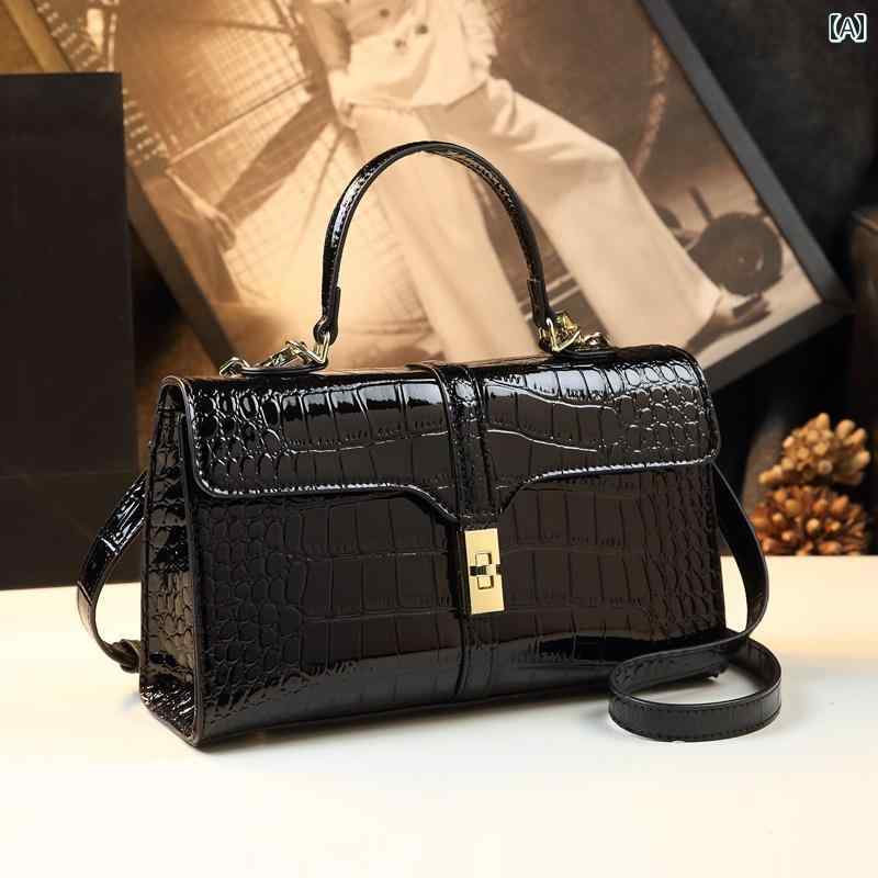 ハンドバッグ レディース ワニ柄 ポリエステル 牛革 クロコダイル 柄 蓋付き袋 ショルダーバック クロス ボディ ボストンバック ミディアム 牛スプリットレザー
