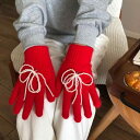 2手袋 レディース スマホ対応 ニット手袋 防寒 グローブ パール 蝶結び ダークグレー ホワイト レッド ライトグレー ブルー スカイブルー ブラウン ブラック パープル イエロー ポリエステル