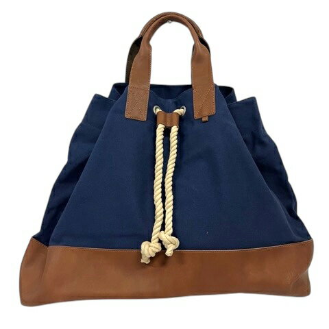 【中古】ダブルスタンダードクロージング ダブスタ DOUBLE STANDARD CLOTHING トートバッグ キャンバス コットン レザー 紺 ネイビー 茶 ブラウン メンズ レディース 【ベクトル 古着】 250923