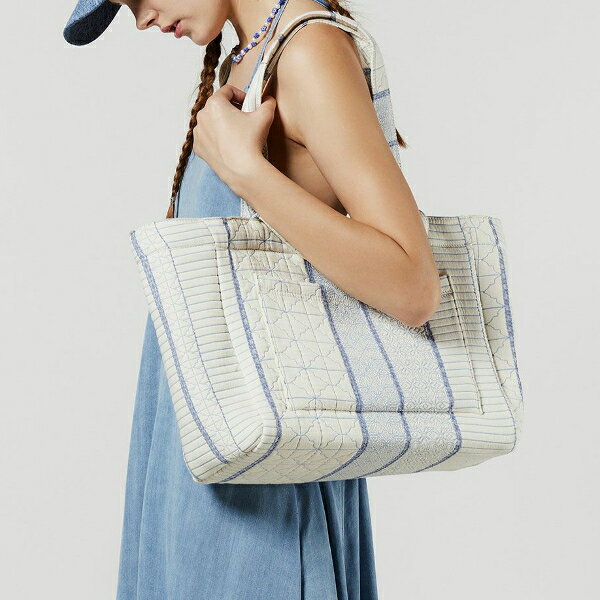 メーカー希望小売価格はメーカー商品タグに基づいて掲載しています。 ご注意 ※色の見え方につきまして ご使用されているパソコンのモニタおよび携帯電話のメーカー・機種・画面設定等により、実際の商品の色と異なって見える場合がございます。 ※ご注文の交換・キャンセル・返品はできませんのでご了承下さい。 ※送料は630円(税込)です。(沖縄・離島・一部地域は別途有) 1梱包3,980円(税込)以上の場合、送料0円にて商品をお届け致します。 (沖縄・離島・一部地域は1梱包9,800円(税込)以上で送料無料となります。)cm サイズ 【F】高さ30cm 幅36cm マチ18cm (※メーカーサイズ参照) 素材 コットン65% ポリエステル35% カラー キナリ 備考 異なる複数の柄をジャガードで表現した可憐なトートバッグ。 生成色のベースに柔らかなブルーの糸の組み合わせが爽やかで柔らかな印象を与えてくれます。 ハンドルは長短2タイプになっているので、手提げにしても肩掛けにしてもOK。 マチとサイドポケットがあるので、繊細なルックスながらも収納力に優れているので、普段使いしやすいのが魅力です。