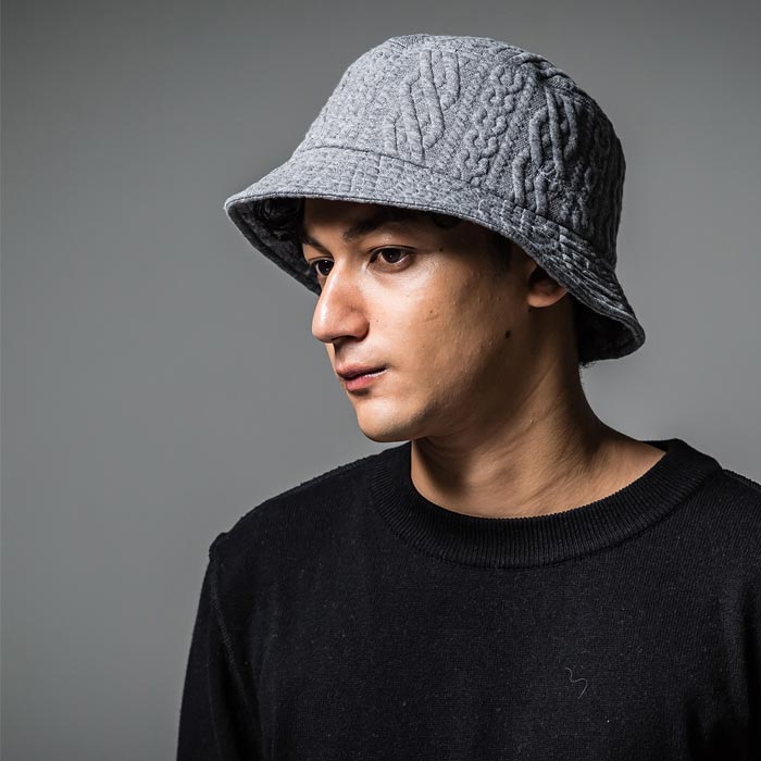 RESOUND CLOTHING リサウンドクロージング RC30-CAP-003 ROPE SWEAT bucket hat GREY ケーブル編みスウェットバケットハット グレー リサウンド キルティング 縄編み柄 ストレッチスウェット メンズ 2023年秋冬