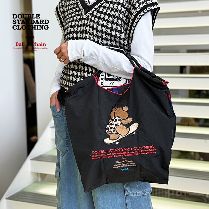 【新作】ダブルスタンダードクロージング×ボールアンドチェーン ショッピングバッグ DOUBLE STANDARD CLOTHING×Ball&Chain スケボーベア Mサイズ エコバッグ トートバッグ ダブスタ ブラック【2025秋冬】