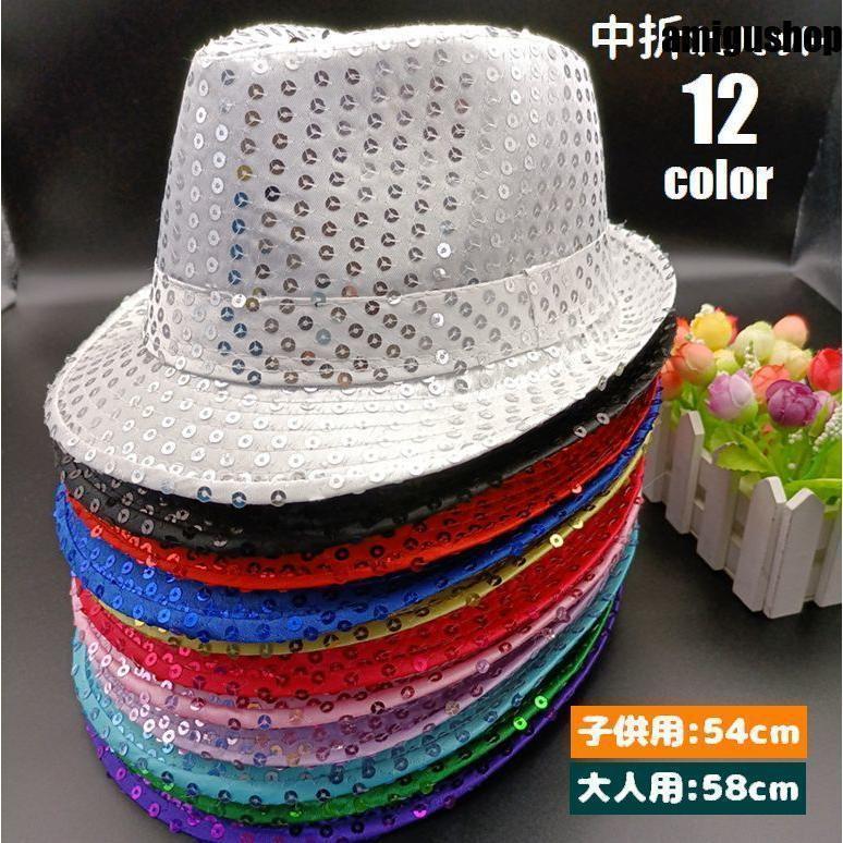 ハット 中折れハット 帽子 キッズ レディース 子供用 大人用 ぼうし キラキラ スパンコール 親子でお揃い ペアルック 中折れ帽 女の子 男の子 ダ