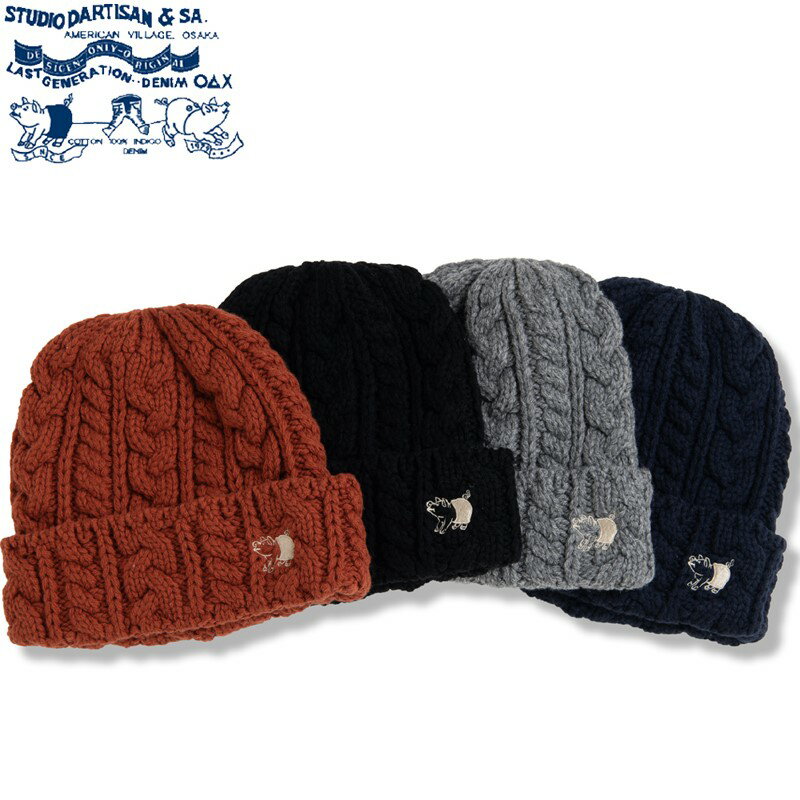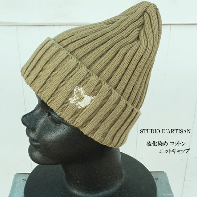 studio dartisan ダルチザン 硫化染め コットン ニットキャップ 7557 ユニセックス【STUDIO D'ARTISAN/ステュディオ・ダ・ルチザン/メンズ/レディース/ワッチキャップ/ワンポイント/豚/刺繍/カジュアル/ストリート/日本製】【2024モデル】【正規品】