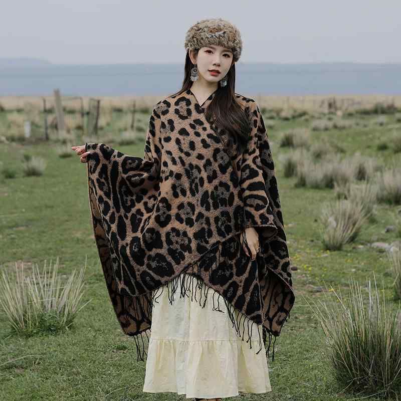 レディース ファッション 小物 オシャレ アイテム ショール マフラー ケープ ストール 季節物 ヒョウ エスニック マント ショール アウターウェア スプリット スカーフ