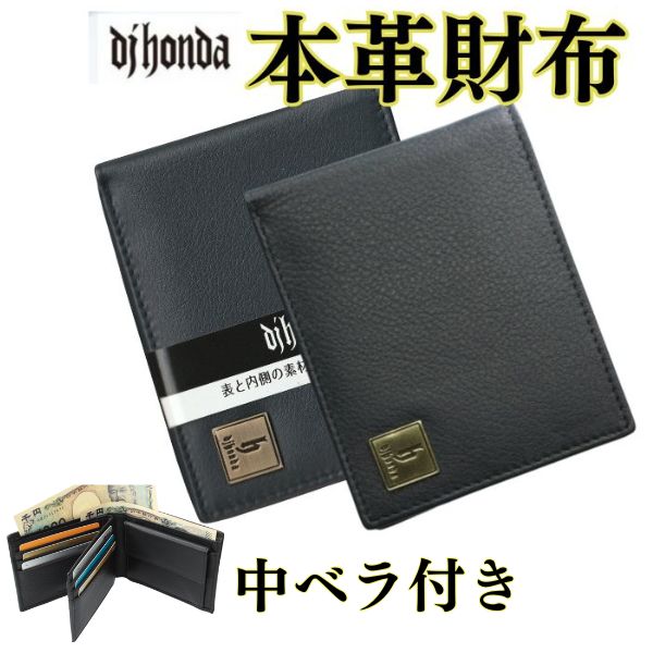 【dj honda】DJホンダ 財布 メンズ 二つ折り 高校生 本革 ブラック 収納 カード 黒 男性 プレゼント 小銭入れ 人気 革 ブランド メンズ 中べら なかベラ付き 父の日 カードがたくさん入る ブランド 二つ折り財布 小銭入れあり 大容量 多機能 革 牛革 プレゼント 男性