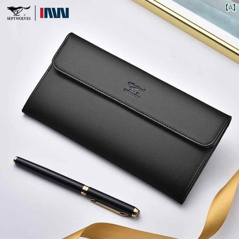 メンズ 財布 ウォレット Septwolves メンズ長財布 革 ウォレット第一層 牛革大容量 手持ち シンプル