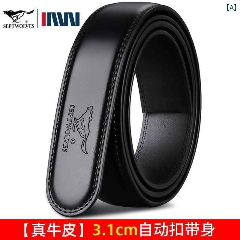 ベルト レザー メンズ Septwolves レザーベルト ヘッドレス メンズ 革 35 cm トップレイヤー 牛革 自動 バックル ヘッド ベルト ボディ ストリップなし