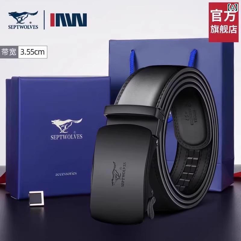 ベルト レザー メンズ Septwolves ベルト メンズ 2025 新型 革 自動 バックル 幅 広 牛革