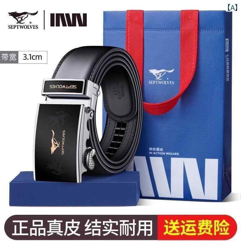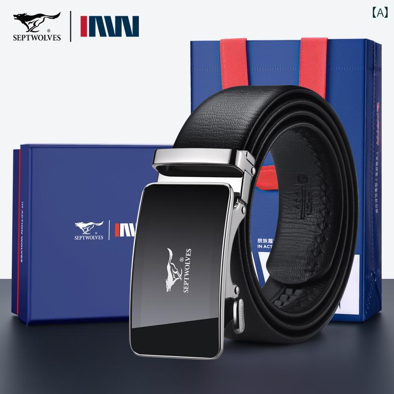 ベルト レザー メンズ Septwolves メンズベルト 2025 新型 革 自動 バックル ビジネス ベルト 高級第一層 牛革