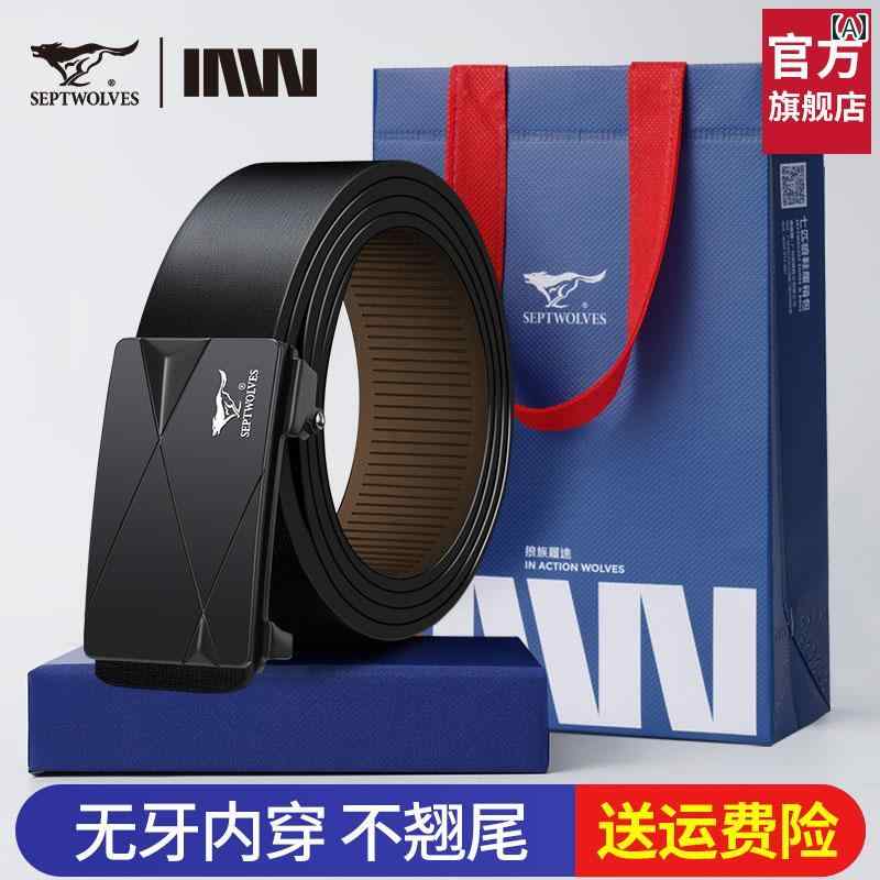 ベルト レザー メンズ Septwolves ベルト メンズ 革 2024 歯なし インナー 自動 バックルベルト 牛革 ズボン