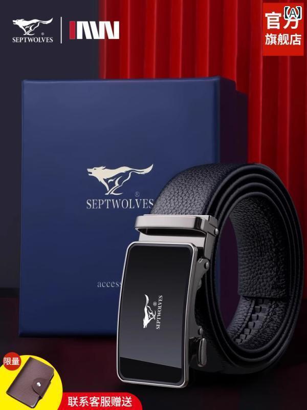 メンズ ベルト バックル Septwolves ベルト メンズ 2025 革 自動 バックル 牛革 ビジネスの 高級