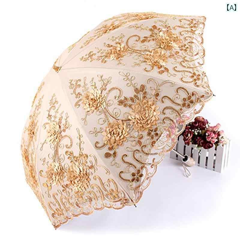 折り畳み式 傘 女性用 高級 日傘 日焼け防止 UV カット晴れの 日も 雨の 使える 二 重 傘 折りたたみ 刺繍 姫 系
