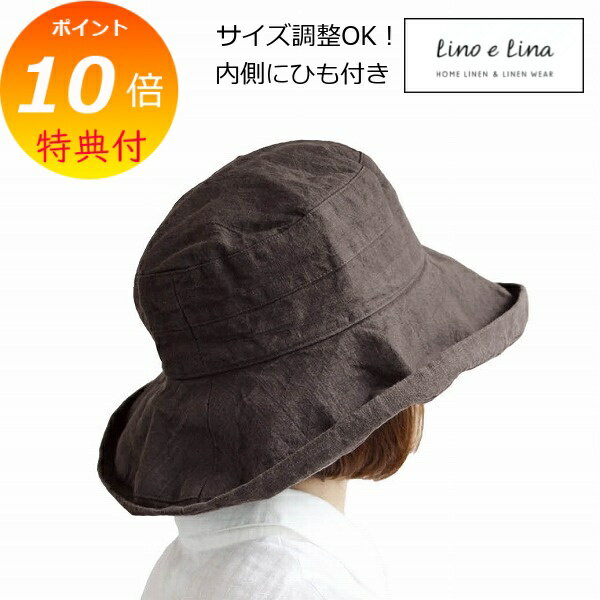 【正規販売店】 リーノリーナ リネン 帽子 ハット エルマ リネン 麻 100% Lino e Lina 帽子 日除け UV 洗える おしゃれ サイズ調節可能