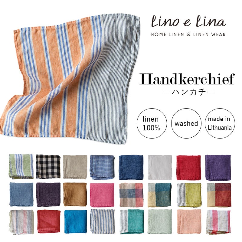 リーノエリーナ リネン ハンカチ おしゃれ ナチュラル ギフト リトアニアリネン 麻 100% 大人 可愛い シンプル Lino e Lina 無地 ストライプ チェック プレゼント 母の日 父の日