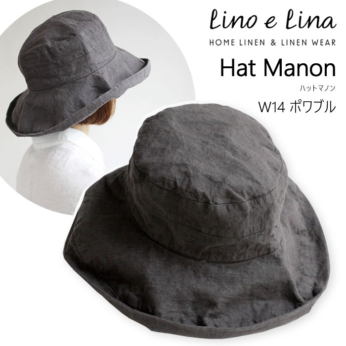 帽子 つば広 リネン たためる 洗える 春 lino e lina リーノエリーナ 帽子 Hat Manon ハット マノン ポワブル 日除け 日よけ 内側ひも付き リネン素材 墨色 グレー系 W14 折り畳み