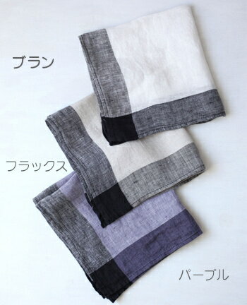 リーノエリーナ Lino e Lina ハンカチーフ クアドロ ブラン フラックス パープル リネンハンカチ