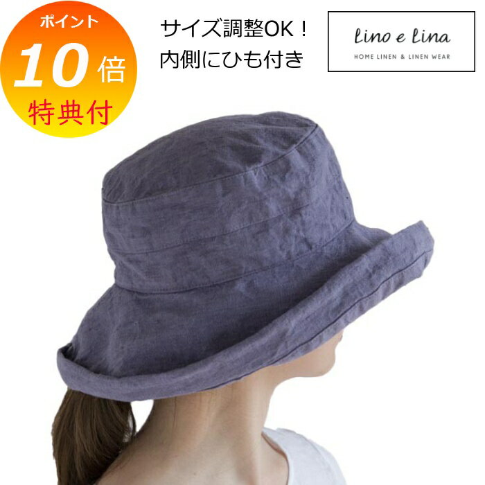 【特典付き】 ハット 帽子 マノン ポワブル W14 リーノエリーナ Lino e Lina 内側ひも付き グレー グレイ レディース 女性 無地 リネンハット 帽子 ナチュラル 無地 【送料無料 ポイント10倍】
