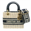 【中古】Christian Dior クリスチャンディオール Lady Dior Medium Oblique Jacquard Bag レディディオール ミディアム ラタン & オブリーク ジャガード 2way ハンドバッグ ショルダーバッグ ネイビー アイボリー レザー レディース M0565CMVO_M808 本物 送料込み!!