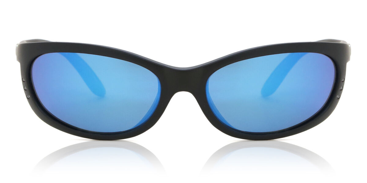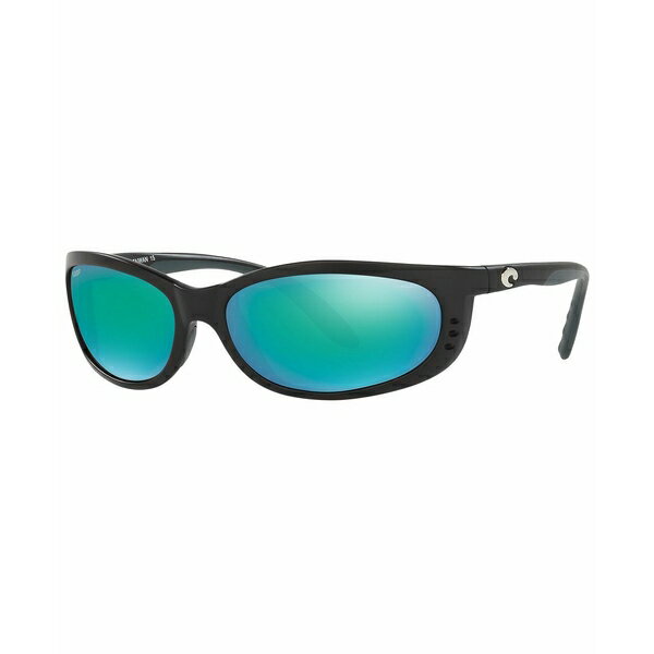 コスタ レディース アクセサリー サングラス・アイウェア Costa Unisex Fathom Green Polarized Wrap Sunglasses Matte Black Blue Mirror ブラック