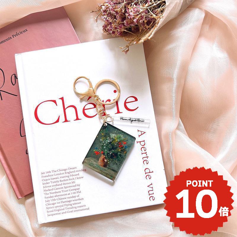 キーホルダー おしゃれ レディース バッグチャーム アクセサリー チャーム キーリング 飾り シンプル かわいい 大きめ アクリル ミラー 鏡 絵画 名画 イラスト ルノワール Flowers in a Vase