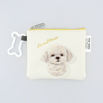 フラワーリング ミニフラットポーチ 骨型カラビナ付き マルチーズ GPO0323-L