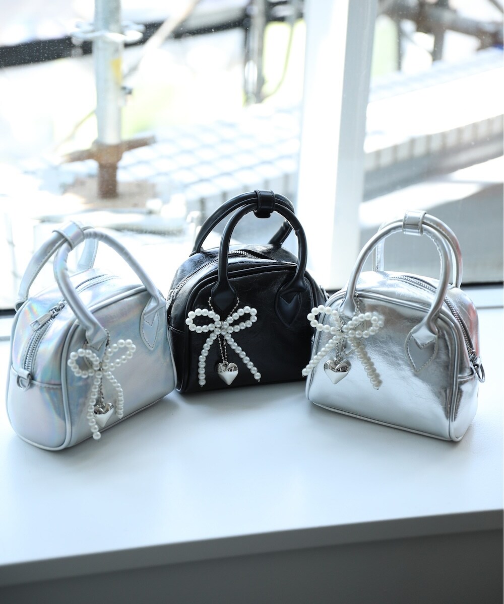 【HOOK】for girls リボンチャーム付きホログラム2WAY ハンドバッグ/ショルダーバッグ/フック(HOOK)